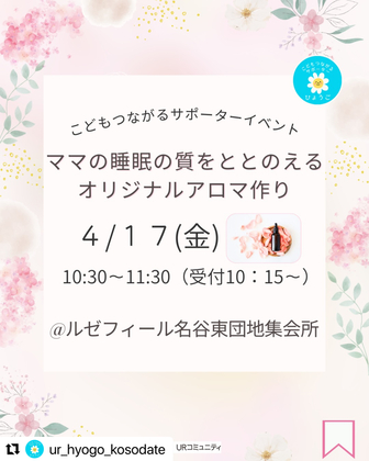 【イベント名】ママの睡眠の質をととのえるオリジナルアロマ作り