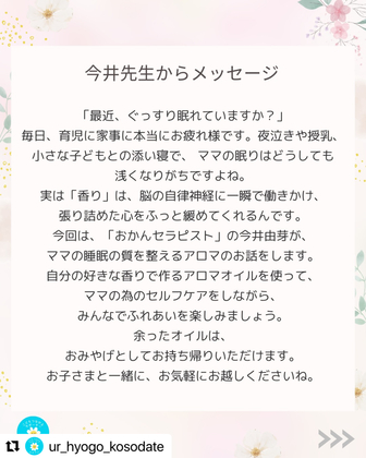 「ママの睡眠の質をととのえるオリジナルアロマ作り」