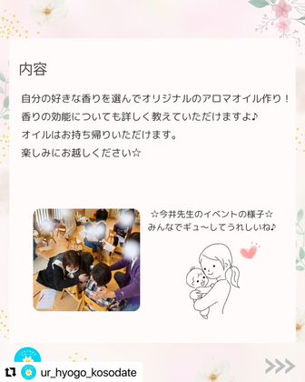 【イベント名】ママの睡眠の質をととのえるオリジナルアロマ作り